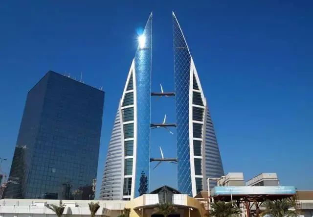 巴林世貿(mào)中心,是全球第一座利用風(fēng)能作為電力來源的摩天大樓。在兩座大廈之間設(shè)置了水平支持的3座直徑29米的風(fēng)力渦輪。風(fēng)電機(jī)組能夠支持大廈所需用電的11%-15%。