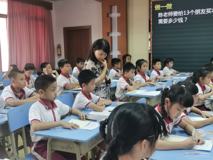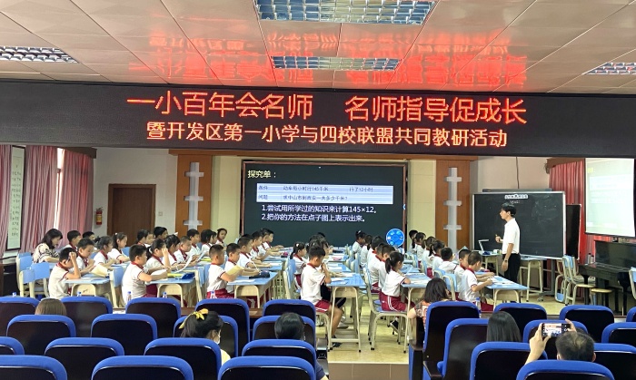 承擔(dān)此次活動(dòng)的授課教師和學(xué)生是來自開發(fā)區(qū)第一小學(xué)陳開明老師和四年級5班的學(xué)生。陳老師在備課組成員的幫助下不斷調(diào)整教學(xué)方法,在前期多次試教中完善課堂細(xì)節(jié),精準(zhǔn)把握課堂預(yù)設(shè)與教學(xué)效果。讓人眼前一亮的是,在此次展示的四年級上冊《三位數(shù)乘兩位數(shù)》課堂中,陳老師把數(shù)形結(jié)合、算式和豎式相結(jié)合,引導(dǎo)學(xué)生不僅要知道“怎么算”,還要明白“為什么這樣算”,突破常規(guī)算理;新穎的教學(xué)策略,既培養(yǎng)學(xué)生思考的學(xué)習(xí)習(xí)慣,更突出了學(xué)本教學(xué)的理念,同時(shí)能有效運(yùn)用舊知遷移完成新知學(xué)習(xí),達(dá)到了很好的教學(xué)效果。給在座的老師們呈現(xiàn)了一場知識(shí)的盛宴,帶來了很多啟發(fā)和思考。