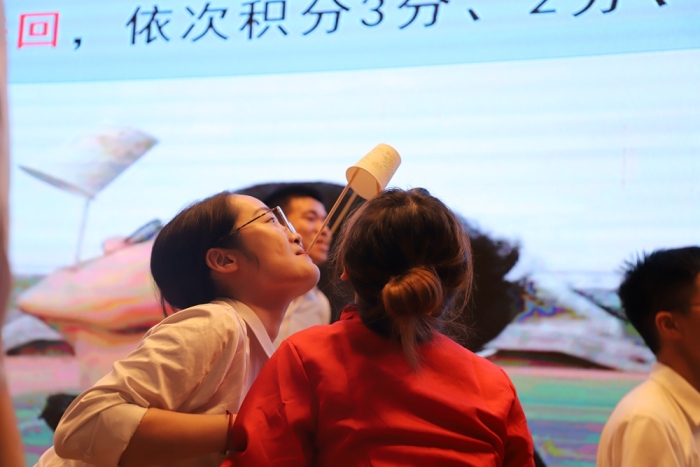 最后,老師們在“筷”遞紙杯、套圈取物等游戲中分組比拼,充分感受游戲的樂趣,使氣氛變得更加歡樂。