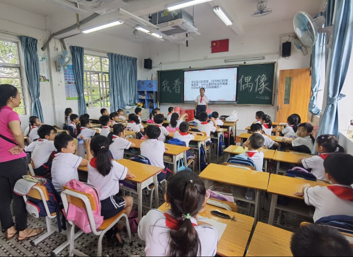 青少年時(shí)期是人們形成世界觀、人生觀和價(jià)值觀的重要階段,偶像崇拜是當(dāng)今青少年精神生活的一部分,是成長(zhǎng)的必經(jīng)之路,是社會(huì)化的重要?dú)v程。為了科學(xué)地引領(lǐng)幫助孩子們樹(shù)立正確的偶像觀,發(fā)揮偶像們的激勵(lì)作用。9月27日,石岐實(shí)驗(yàn)小學(xué)對(duì)全校同學(xué)進(jìn)行了“我看偶像”主題班隊(duì)活動(dòng)。