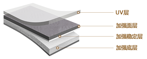 強(qiáng)化玻璃纖維穩(wěn)定加強(qiáng)層,使得地板具有優(yōu)異的耐磨性及穩(wěn)定性